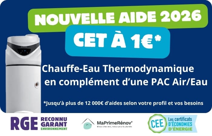 Le chauffe-eau thermodynamique chauffe uniquement l’ECS. Il utilise les calories de l’air pour produire de l’eau chaude, mais n’a pas la puissance suffisante pour alimenter un réseau de chauffage. Pour vos radiateurs ou plancher chauffant, une pompe à chaleur air/eau ou une chaudière reste la solution adaptée.