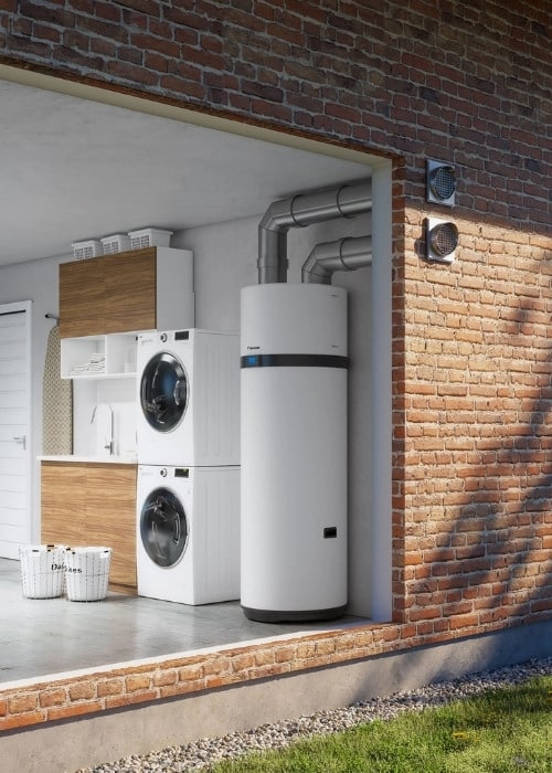 Ce chauffe-eau thermodynamique à air extérieur (monobloc gainé) capte l’air extérieur et le rejette via des conduits, permettant de chauffer l’eau sanitaire sans perturber la température intérieure. Ce système, comme le ballon bi-bloc, est privilégié en rénovation énergétique pour réaliser de véritables économies d’énergie avec la pompe à chaleur (PAC), sous la supervision d’un chauffagiste.